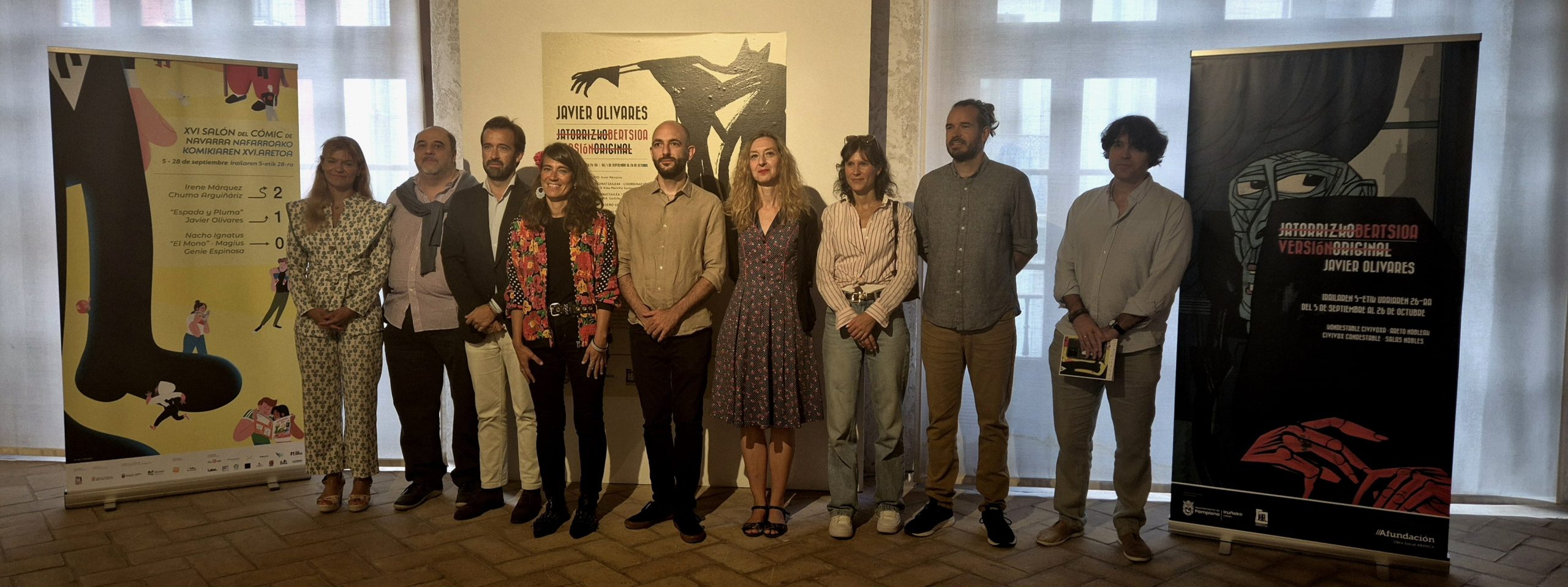 Esta mañana han presentado en Condestable la XVI edición de este Salón: Maider Beloki, concejala de Cultura, Fiestas, Educación y Deporte del Ayuntamiento de Pamplona; Javier Pérez de Zabalza, director del Salón del Cómic de Navarra; Guillermo Sánchez García, director de la de empresas de ABANCA Navarra – La Rioja; y Asier Mensuro, comisario de la exposición «Versión Original» Javier Olivares.